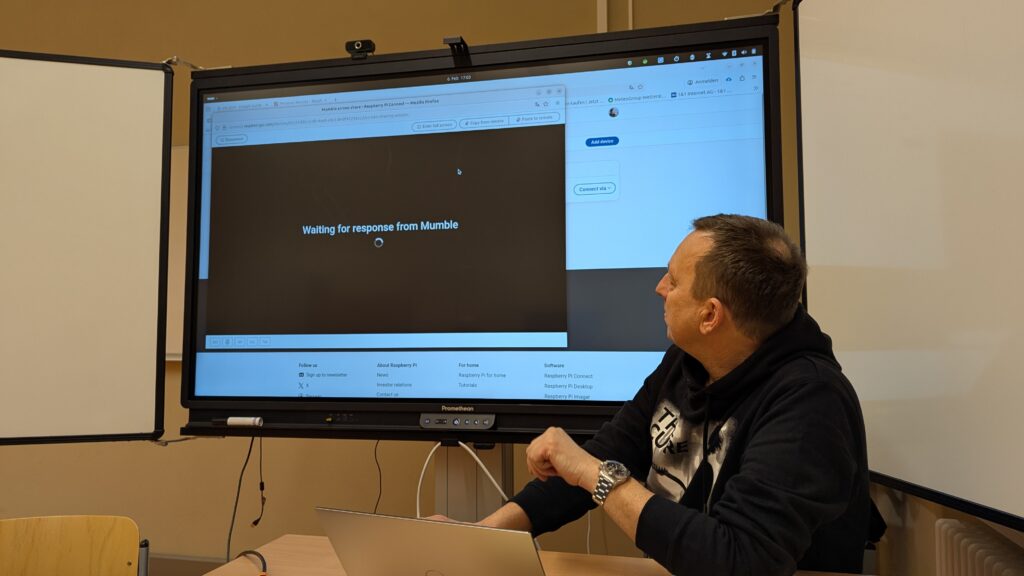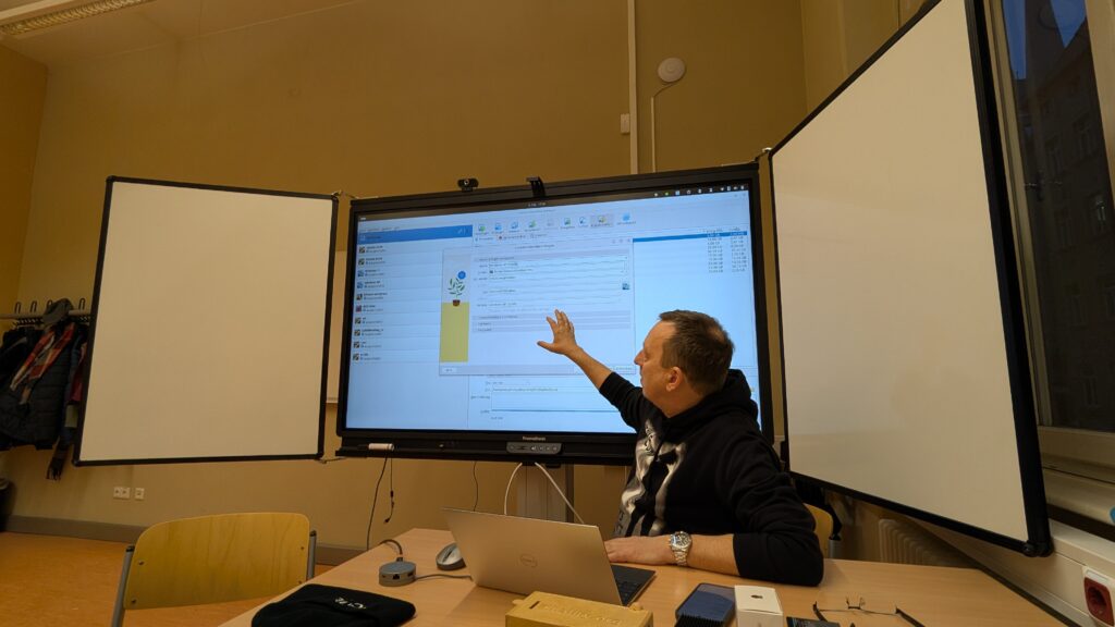 Einer der Teilnehmer testete es direkt im Anschluss und demonstrierte sein Vorgehen am Smartboard. Während der Vorbereitungen nutzte Frank L. die Gelegenheit, noch einmal auf unsere Spendenaktion für die Funkamateure Whiskey 19 (W19) hinzuweisen (wir berichteten bereits) und bat auch jene um Unterstützung, die bei unseren letzten Treffen nicht dabei sein und spenden konnten. Die Spendenaktion ist uns deshalb so wichtig, weil es unsere Hality ohne die Funkamateure nicht gäbe: Diese haben uns damals am Rosengarten ein Heim geboten, wo wir uns regelmäßig treffen und auch unsere ersten Linux-Presentation-Days veranstalten konnten. Ende 2025 mussten die Funkamateure ihre Heimat am Rosengarten jedoch leider aufgeben und haben inzwischen in Halle-Neustadt neue Räumlichkeiten bezogen. Natürlich ist dort noch einiges zu tun und finanzielle Unterstützung kann man dafür immer gut gebrauchen. Dazu wollen wir mit unserer Spendenaktion beitragen und können nach unserem Treffen vom 06.02.2026 mit Stolz berichten: Unser Spendenziel von 100 Euro wurde erreicht! Herzlichen Dank allen, die sich daran beteiligt haben! Die Spendensumme werden wir voraussichtlich am 19.02.2026 in den neuen Räumlichkeiten der Funkamateure übergeben und selbstverständlich nachberichten.